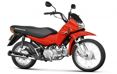 Uma moto Pop 100 de placa MZG 9735 de cor vermelha, ano
