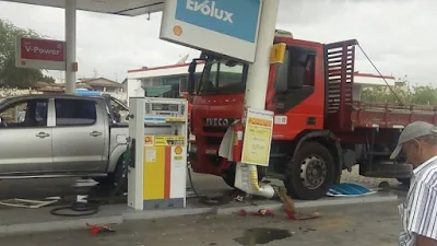 houve feridos apenas danos materiais, uma caminhonete Hilux que abastecia na