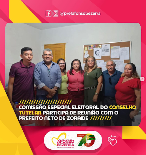 No dia 07 de setembro, na sede da Secretaria Municipal de Educação, a CEE do município de Afonso Bezerra/RN participou de reunião com o prefeito Neto de Zoraide para explanar alguns tópicos importantes do processo de escolha. Na reunião foi firmado diversos pontos positivo para tal processo, dentre eles, a aquisição do software/sistema computadorizado para a votação das eleições do Conselho Tutelar visando uma maior segurança, confiança, transparência e agilidade para os candidatos e eleitores do nosso município.